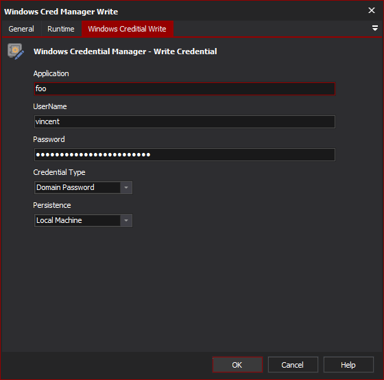 Windows Credential Manager Write Action